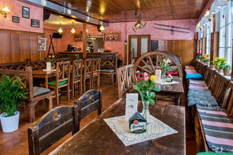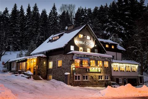 Stylová horská restaurace DOBRÉ CHATY vybavená originálním, ručně vyráběným nábytkem má svou tradici již od roku 1930.