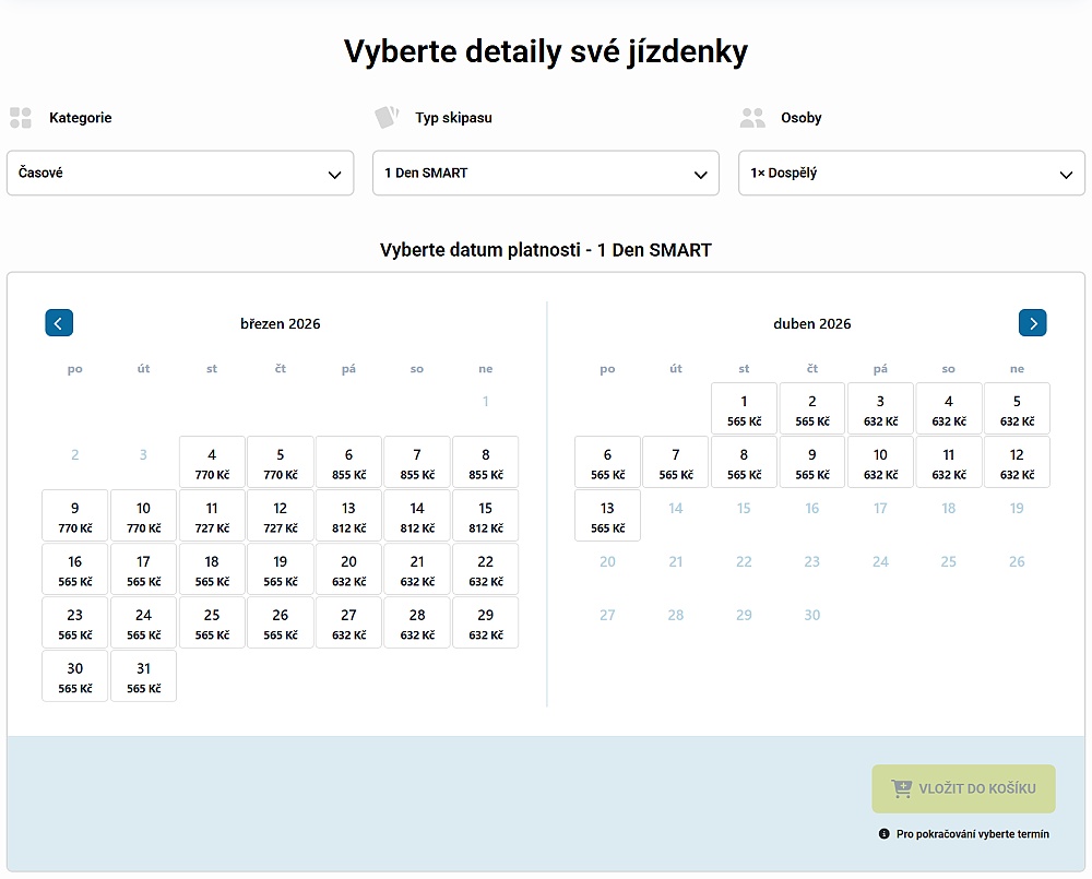 Screenshot e-shopu - při nákupu 1-denní jízdenky dne 4.3.2026