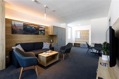 Moderní a komfortní pokoje kde naleznete vše pro dokonalý odpočinek při rekreaci nebo firemní akci. 48 pokojů včetně apartmánů pro rodiny, junior suite nebo dvoulůžkových pokojů.