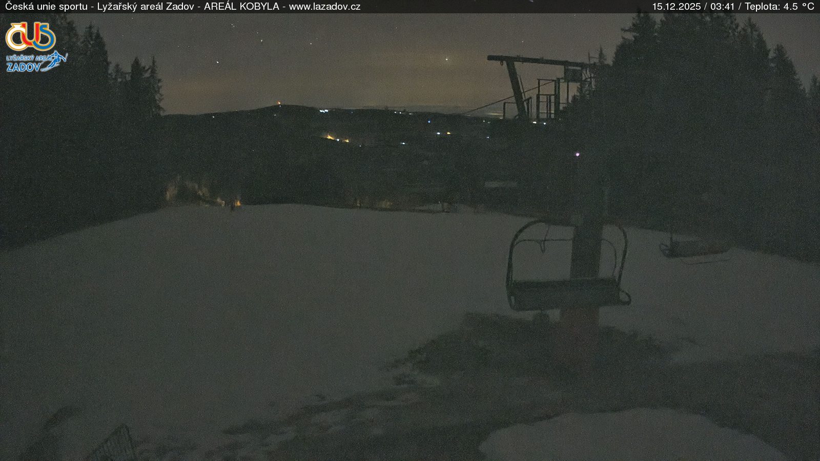 WebkameryZadov – Kobyla Velký obrázek15.12.2025 1:50:52Vyberte čas: Archiv: Dnes 1 den 2 dny týden Zadov – Kobyla, horní stanice Velký obrázek15.12.2025 1:43:01Vyberte čas: Archiv: Dnes 1 den 2 dny týden Zadov – Pucalka Velký obrázek15.12.2025 1:47:15Vyberte čas: Archiv: Dnes 1 den 2 dny týden Churáňov – horní stanice Velký obrázek15.12.2025 1:51:26Vyberte čas: Archiv: Dnes 1 den 2 dny týden Zadov – lyžařská škola Velký obrázek15.12.2025 1:48:48Vyberte čas: Archiv: Dnes 1 den 2 dny týden Zadov – pohled z můstku Velký obrázek15.12.2025 1:52:17Vyberte čas: Nové Hutě Velký obrázek15.12.2025 1:43:29Vyberte čas: Archiv: Dnes 1 den 2 dny týden Znovunačtení stránky - Refresh pageObrázek je z kamer snímán každých 5 až 8 minut