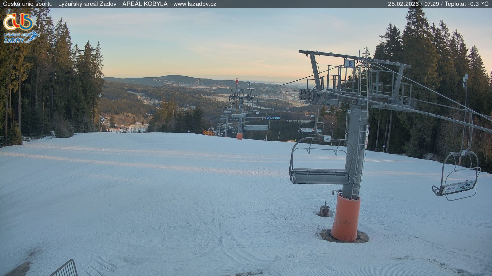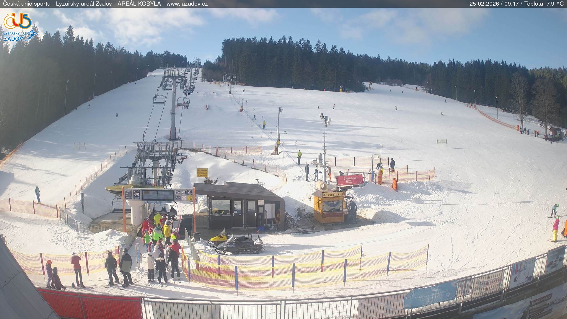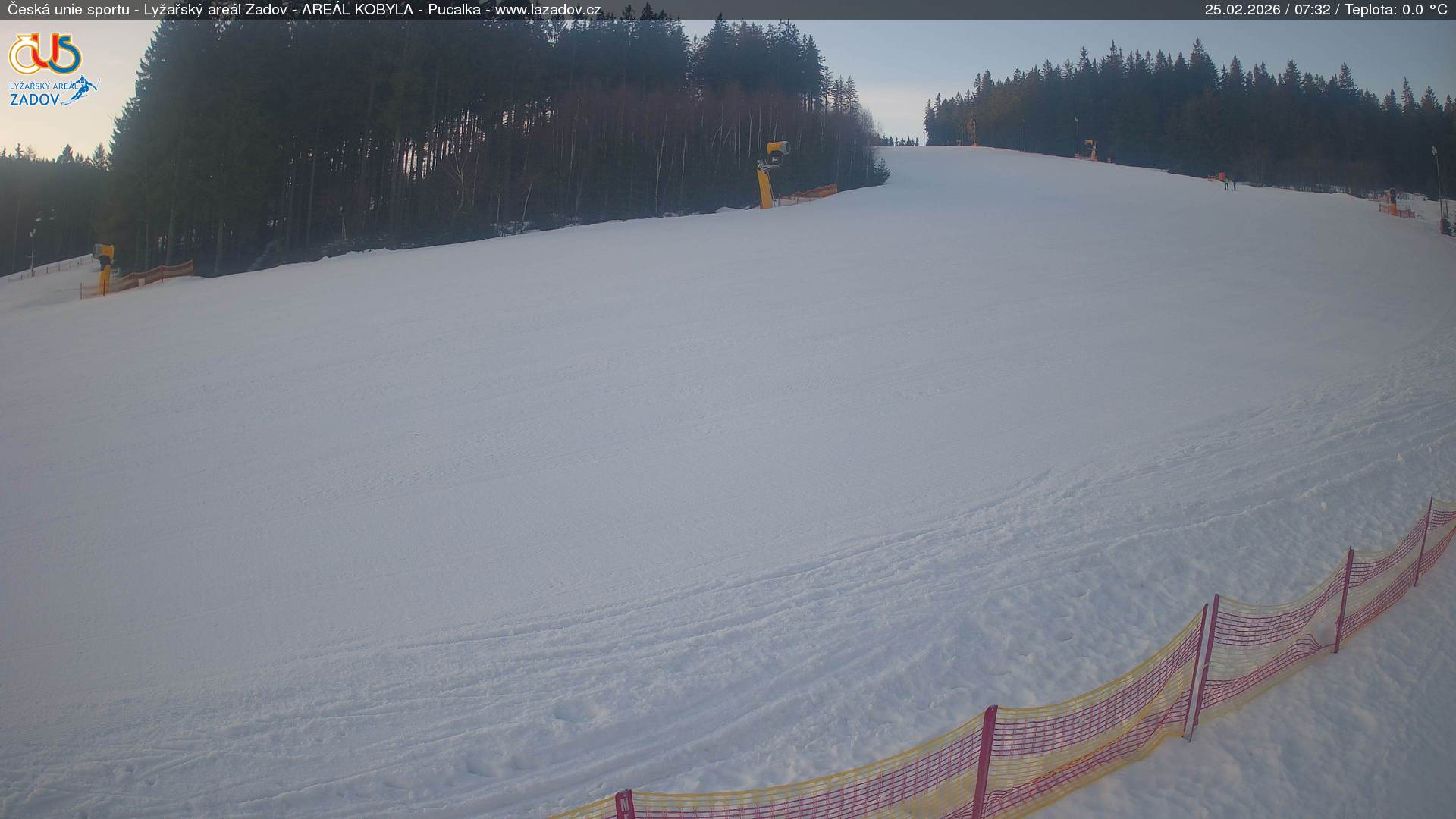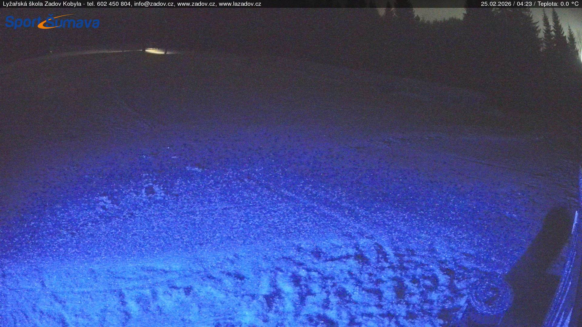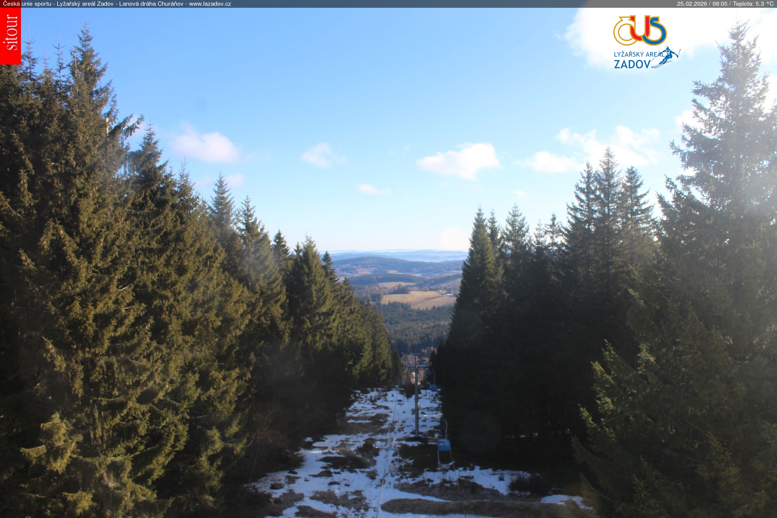 WebCamsZadov – Kobyla Big Image25.02.2026 2:59:17Select time: Archive: Today 1 day 2 days Week Zadov – Kobyla, horní stanice Big Image25.02.2026 3:00:34Select time: Archive: Today 1 day 2 days Week Zadov – Pucalka Big Image25.02.2026 2:59:26Select time: Archive: Today 1 day 2 days Week Churáňov – horní stanice Big Image25.02.2026 3:00:17Select time: Archive: Today 1 day 2 days Week Zadov – lyžařská škola Big Image25.02.2026 3:00:27Select time: Archive: Today 1 day 2 days Week Zadov – pohled z můstku Big Image25.02.2026 3:01:01Select time: Nové Hutě Big Image25.02.2026 2:54:35Select time: Archive: Today 1 day 2 days Week Znovunačtení stránky - Refresh pageObrázek je z kamer snímán každých 5 až 8 minut