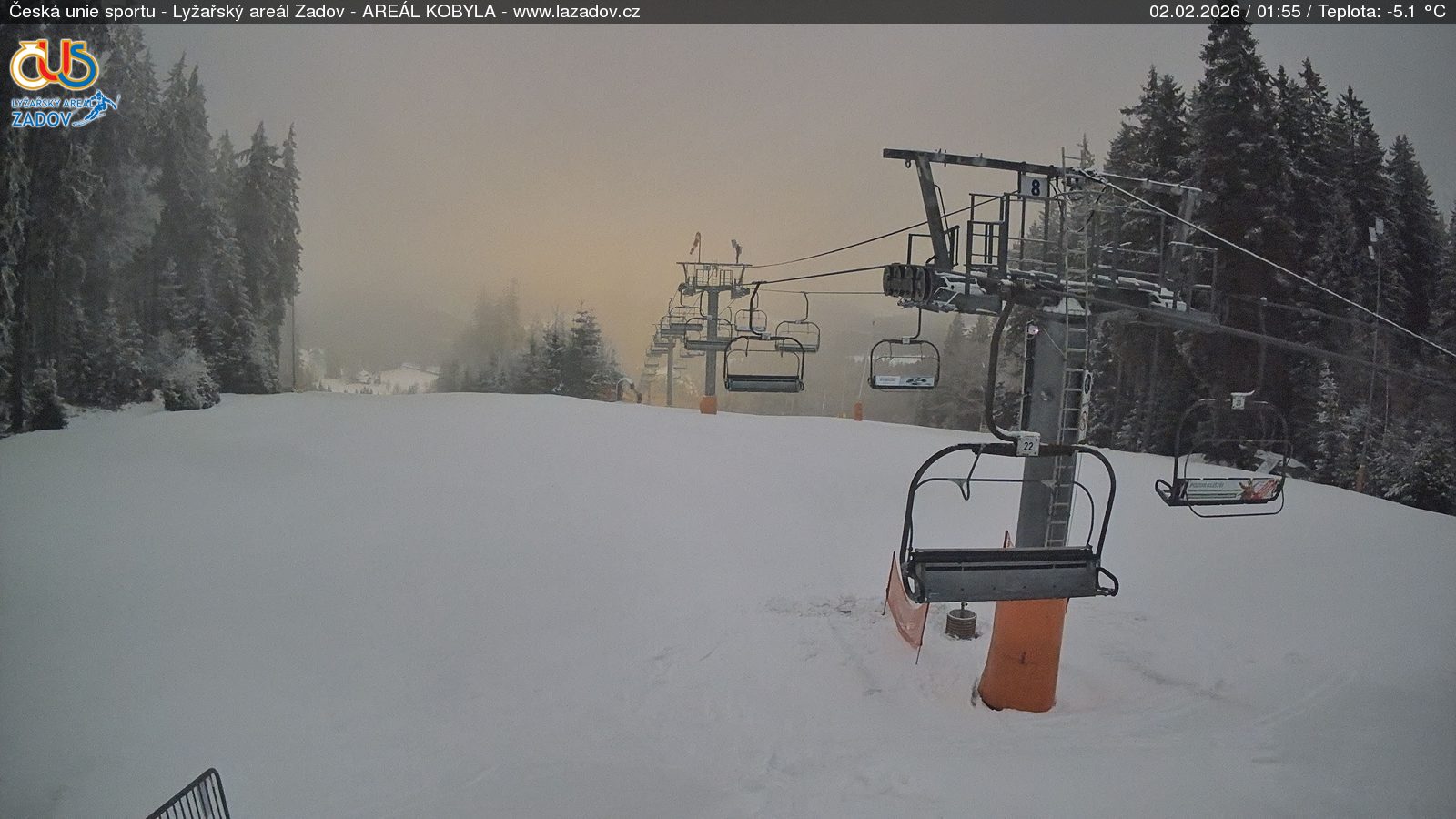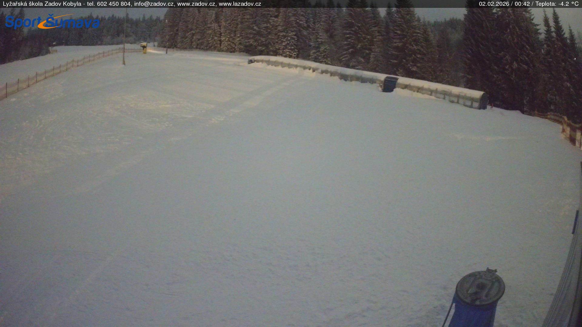 WebkameryZadov – Kobyla Velký obrázek01.02.2026 23:29:16Vyberte čas: Archiv: Dnes 1 den 2 dny týden Zadov – Kobyla, horní stanice Velký obrázek01.02.2026 23:27:14Vyberte čas: Archiv: Dnes 1 den 2 dny týden Zadov – Pucalka Velký obrázek01.02.2026 23:28:14Vyberte čas: Archiv: Dnes 1 den 2 dny týden Churáňov – horní stanice Velký obrázek01.02.2026 23:28:26Vyberte čas: Archiv: Dnes 1 den 2 dny týden Zadov – lyžařská škola Velký obrázek01.02.2026 23:29:24Vyberte čas: Archiv: Dnes 1 den 2 dny týden Zadov – pohled z můstku Velký obrázek01.02.2026 23:28:52Vyberte čas: Nové Hutě Velký obrázek01.02.2026 23:28:34Vyberte čas: Archiv: Dnes 1 den 2 dny týden Znovunačtení stránky - Refresh pageObrázek je z kamer snímán každých 5 až 8 minut