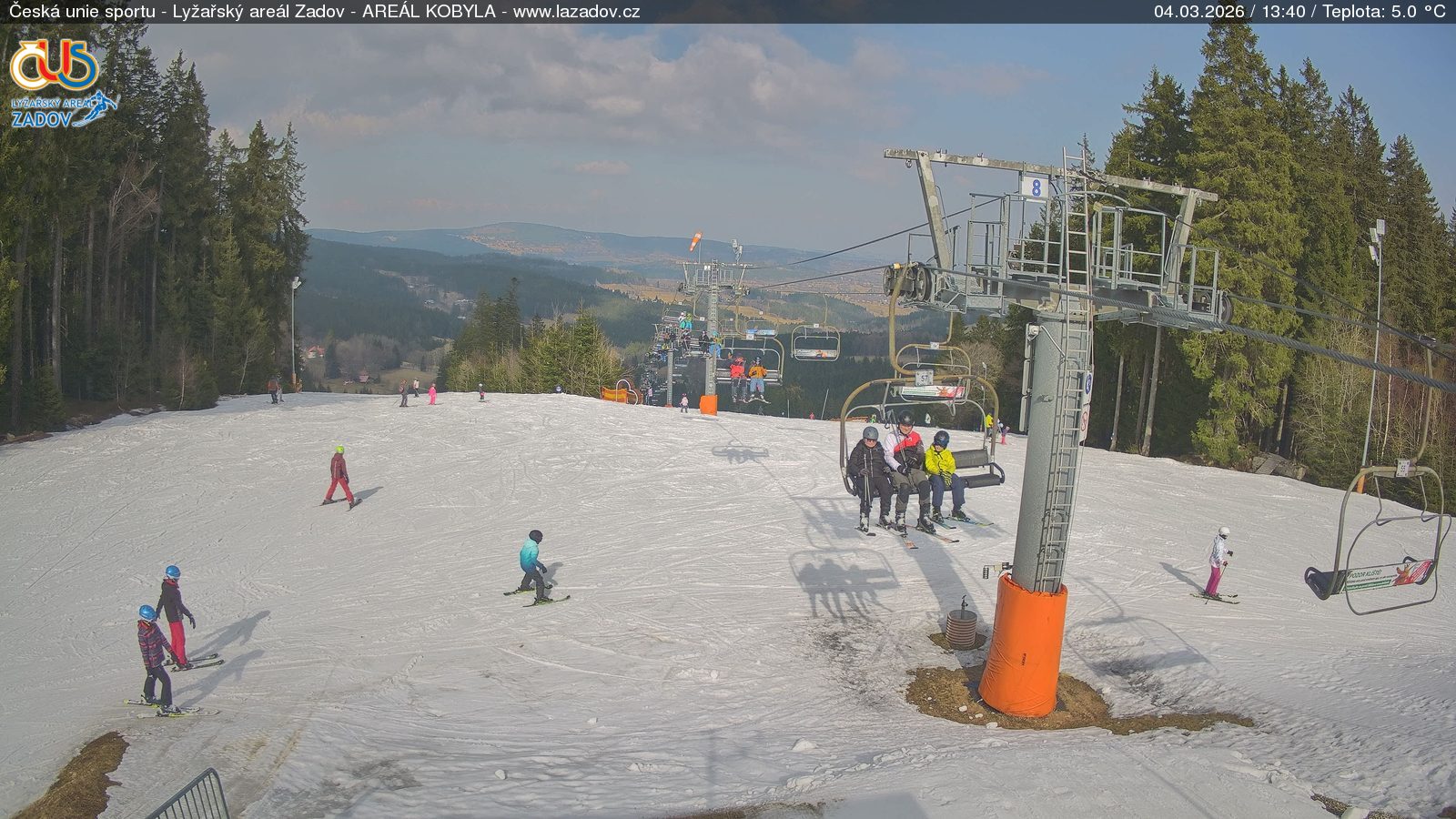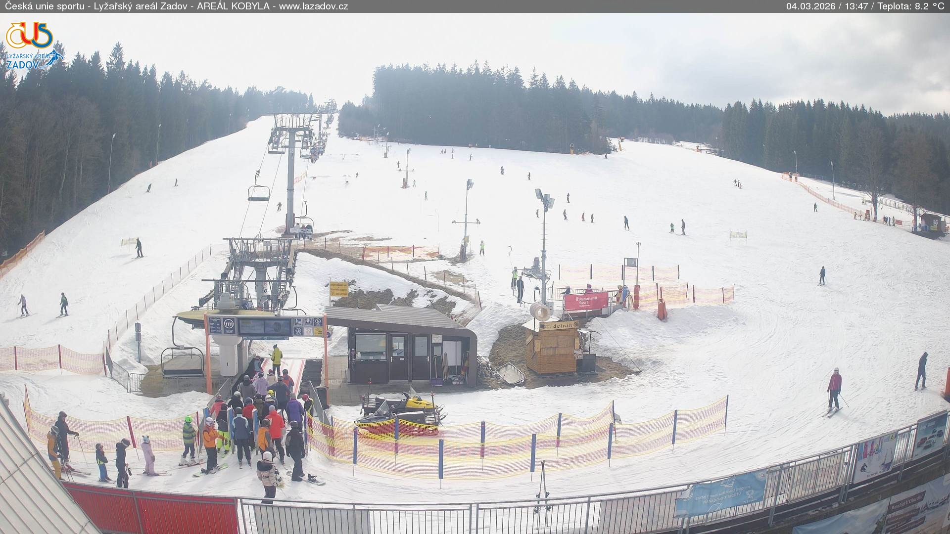 WebCamsZadov – Kobyla Großes Bild04.03.2026 10:59:17Wählen sie Zeit: Archiv: Heute 1 Tag 2 Tage Woche Zadov – Kobyla, horní stanice Großes Bild04.03.2026 10:52:28Wählen sie Zeit: Archiv: Heute 1 Tag 2 Tage Woche Zadov – Pucalka Großes Bild04.03.2026 10:57:10Wählen sie Zeit: Archiv: Heute 1 Tag 2 Tage Woche Churáňov – horní stanice Großes Bild04.03.2026 11:00:18Wählen sie Zeit: Archiv: Heute 1 Tag 2 Tage Woche Zadov – lyžařská škola Großes Bild04.03.2026 11:00:27Wählen sie Zeit: Archiv: Heute 1 Tag 2 Tage Woche Zadov – pohled z můstku Großes Bild04.03.2026 11:00:55Wählen sie Zeit: Nové Hutě Großes Bild04.03.2026 10:57:30Wählen sie Zeit: Archiv: Heute 1 Tag 2 Tage Woche Znovunačtení stránky - Refresh pageObrázek je z kamer snímán každých 5 až 8 minut